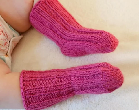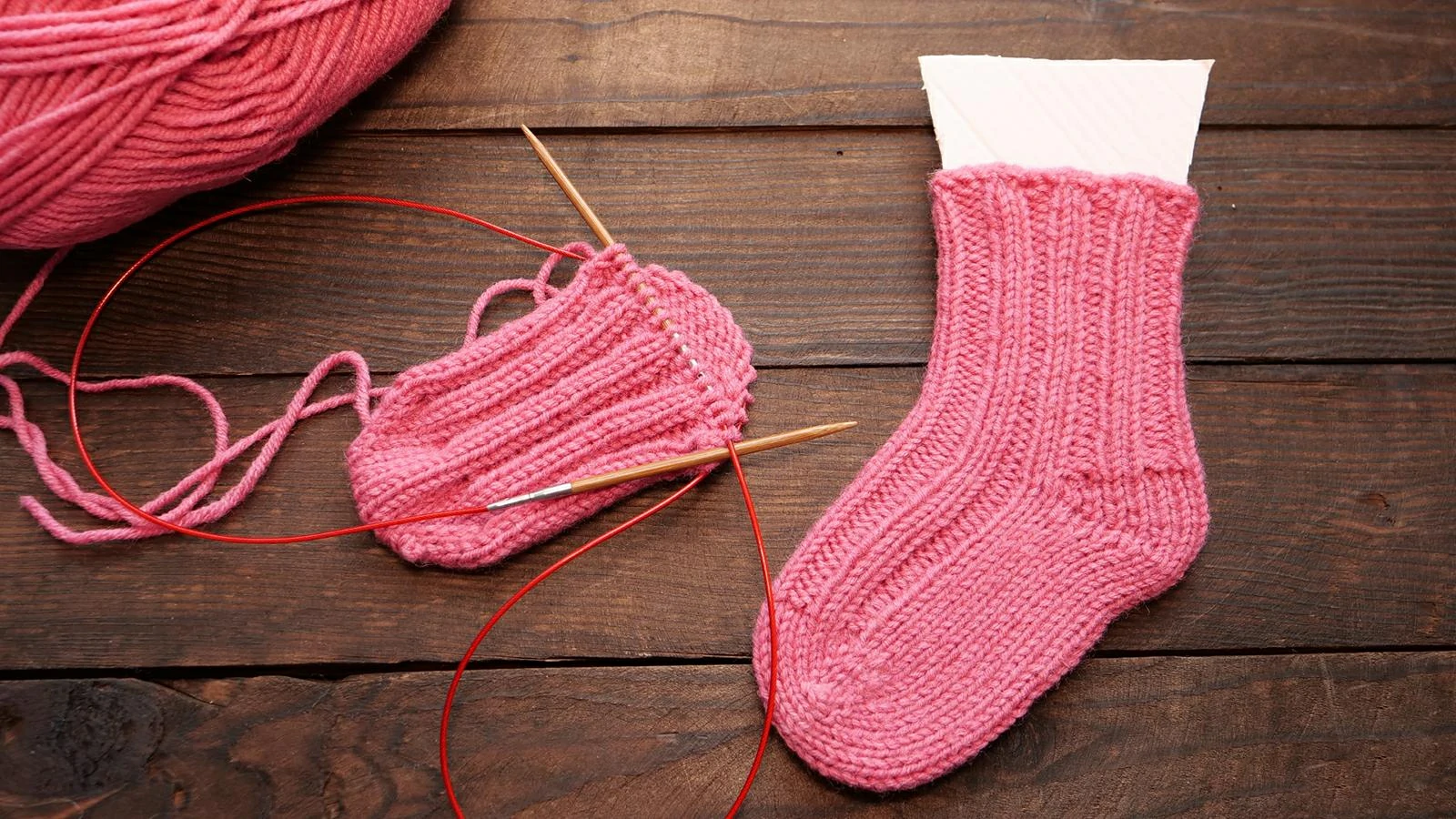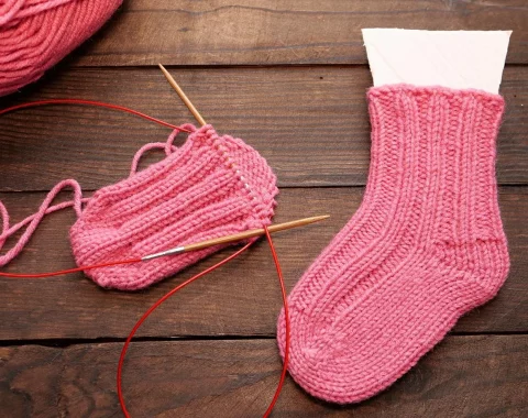 At 7.5 (8.5, 9.5, 11) cm, start knit heel over the first 16 (16, 18, 18) sts.