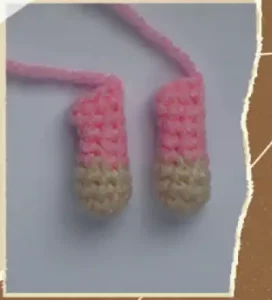 12 rnd: attach first arm – 3 sc, 4 sc, attach second arm – 3 sc, 2 sc (12)