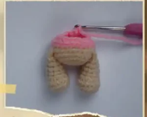 6 rnd: attach first leg – 4 sc, 9 sc, attach second leg – 4 sc, 7 sc (24)