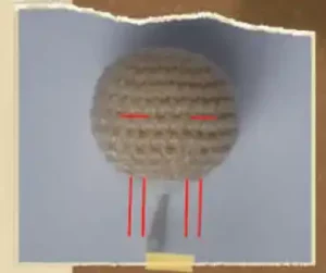 • Create small indentations for the eyes between rounds 7 and 8 of the head.