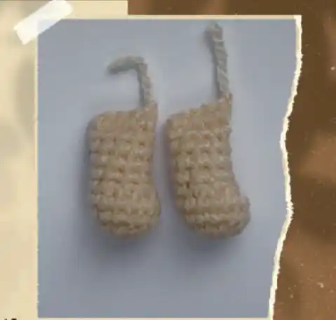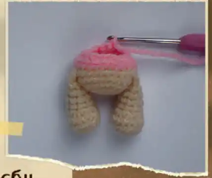 6 rnd: attach first leg – 4 sc, 9 sc, attach second leg – 4 sc, 7 sc (24)