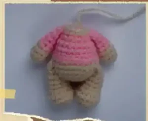12 rnd: attach first arm – 3 sc, 4 sc, attach second arm – 3 sc, 2 sc (12)