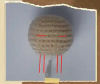 • Create small indentations for the eyes between rounds 7 and 8 of the head.