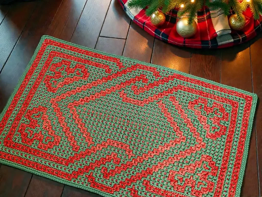 This mosaic crochet rug pattern features a bold, geometric design with a classic festive feel. Worked in rich contrasting colors,…