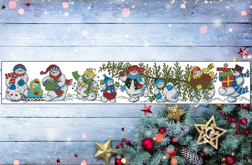 Fill your winter stitching with smiles and sparkle with the Snowmen Parade cross stitch pattern — a cheerful festive design…