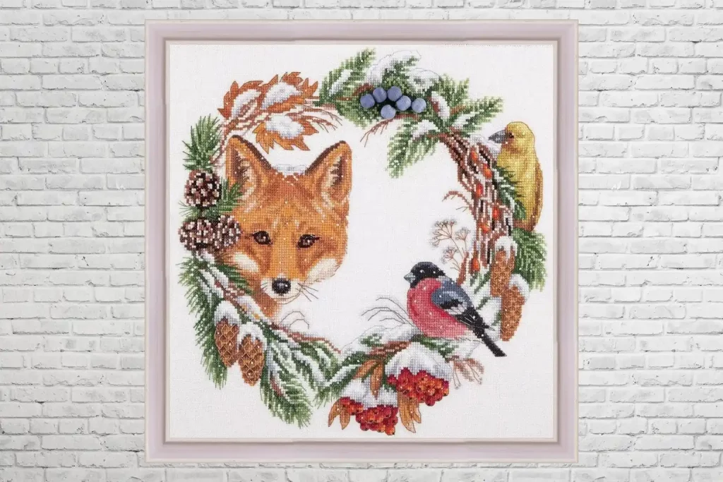 Winter Woodland Wreath – Fox and Birds Cross Stitch Pattern