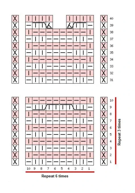 Knit 1-40 rows according to the pattern.