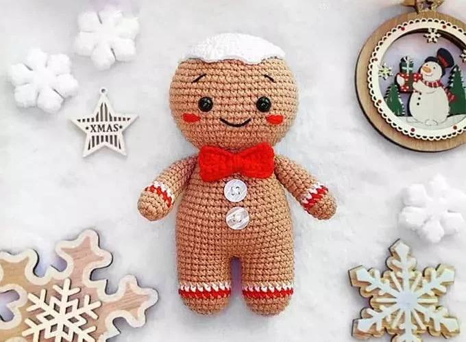 Crochet a cute gingerbread man with this detailed amigurumi pattern by Marizza Toys.