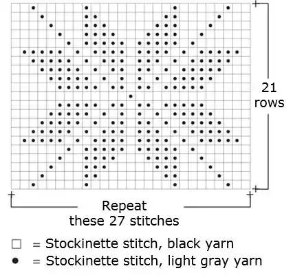 When the pattern is complete, switch back to black yarn and continue in stockinette stitch.