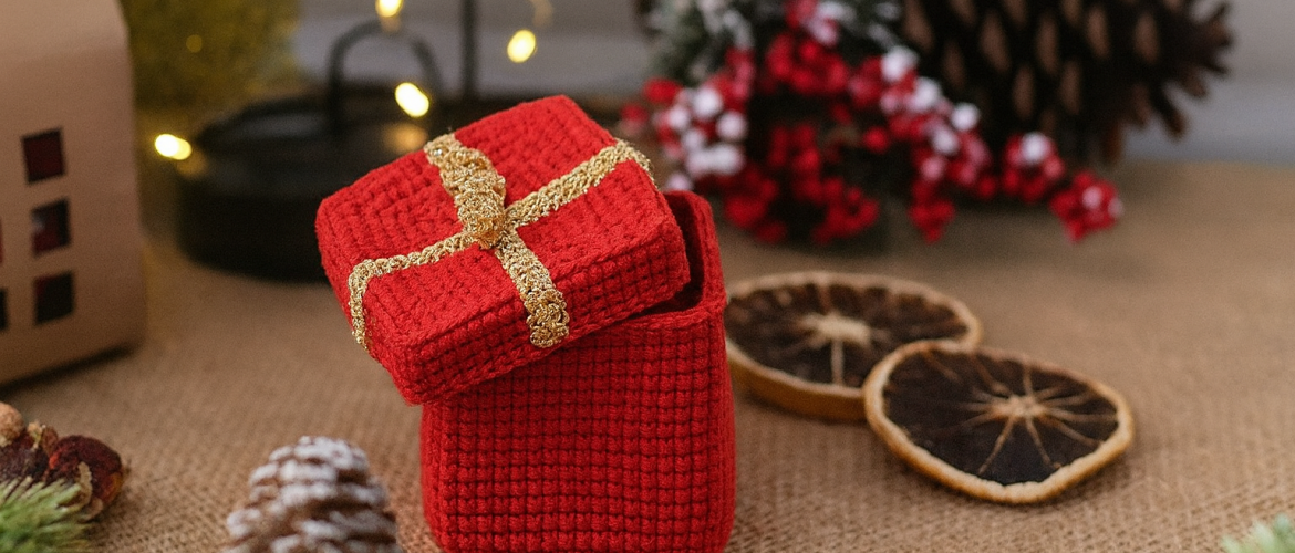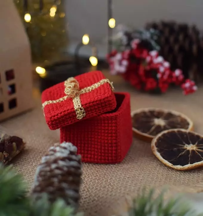 Using this pattern, you can crochet a small gift box amigurumi.
