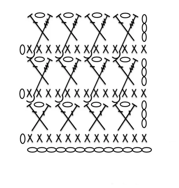 Gauge: 15 stitches without chain stitches*9 rows = 10*10 cm in pattern