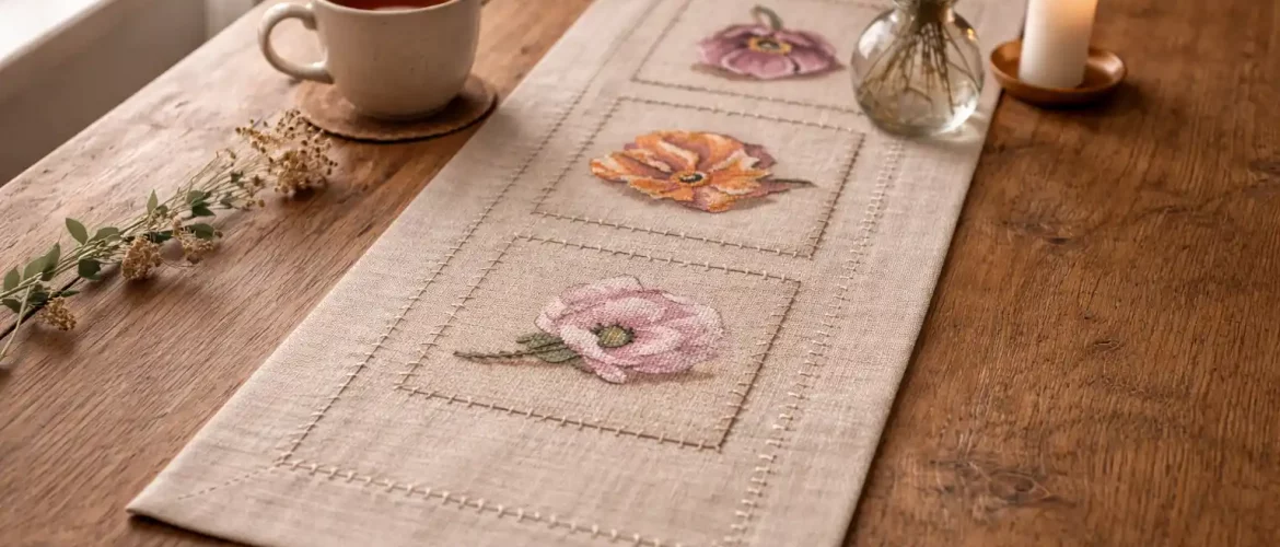 Bring a touch of romantic elegance to your stitching with this charming Lovely Flowers cross stitch pattern — a horizontal floral composition designed to delight with its warm tones and gentle transitions.