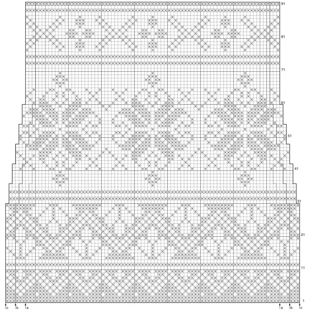 Work according to charts A and B. All rows are shown on the charts; each square represents 1 stitch × 1 row of the pattern.