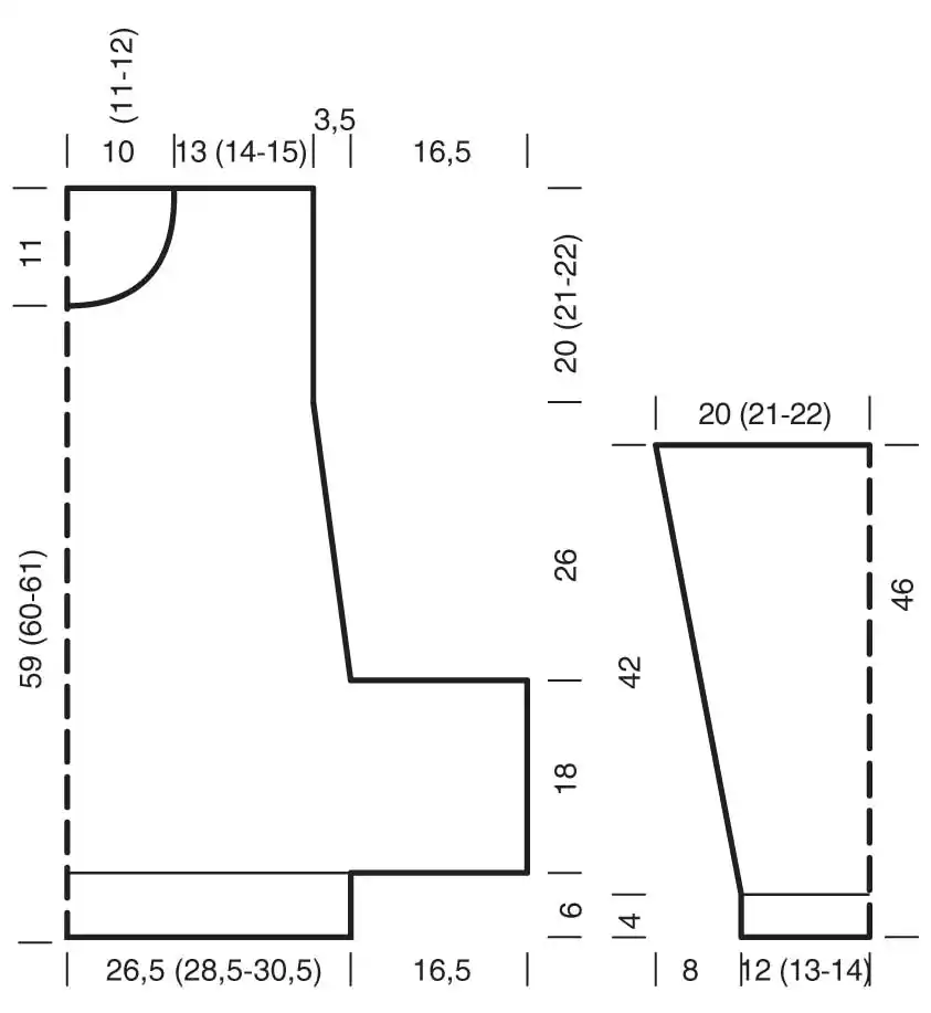 After 20 (21) 22 cm (34/36/38 rows) from armhole, bind off all sts.