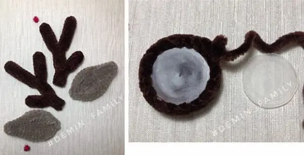Cut two round blanks Ø 3 cm from plastic lids (for hooves). Start with dark brown.