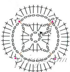 Round1:ch 4, beg edccl, ch 3, *edccl, ch 3; rep from * twice more, join to top of ch4 with sl st