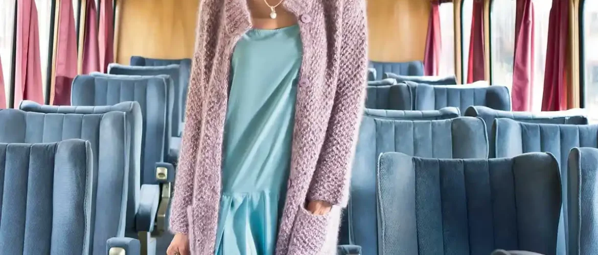 This coat with large pockets is knitted using merino and mohair yarns, making it very warm and slightly fluffy.
