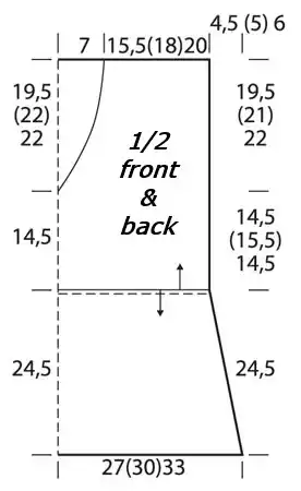 To do this, after 14.5 cm = 24 rows from the cast-on edge, divide the work at the center and finish each side separately.