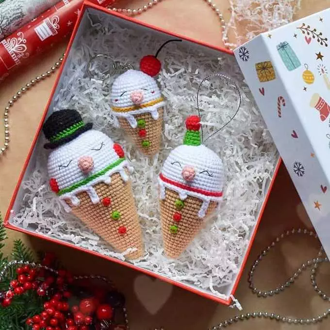 Snowman Ice Cream Cones – Amigurumi Crochet Pattern