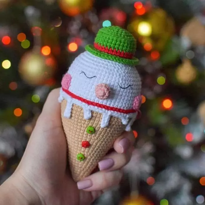 Using this pattern you can crochet three versions of the snowman ice cream: