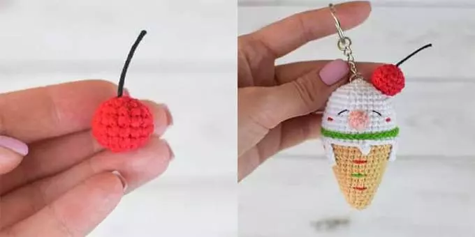 1 round: 6 sc in MR (before tightening the ring, place the cord inside so that the knot is hidden inside the cherry)