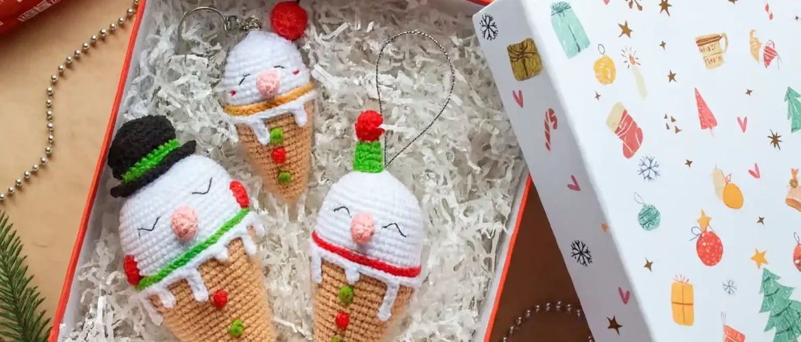 Snowman Ice Cream Cones – Amigurumi Crochet Pattern