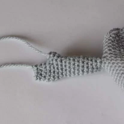 Fasten off, leaving a long tail for attaching the head. You can place a plastic circle at the bottom for the toy’s stability.