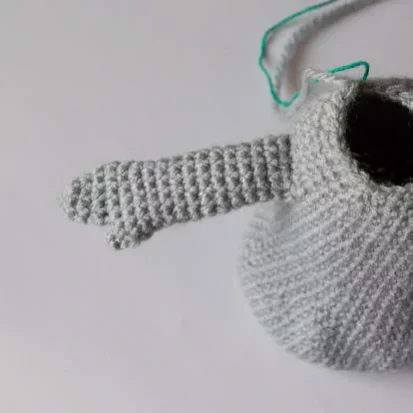 Slightly stuff the top part of the nose, fold and sew. Attach the nose to the head, and then attach the head to the body.